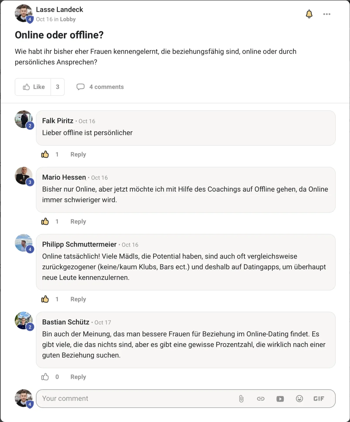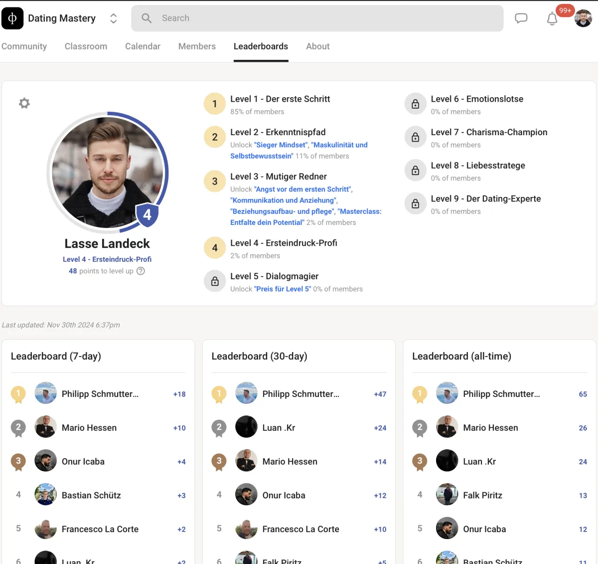 Bleib nicht hinten dran: Immer mehr Männer treten der „Dating Mastery“ Community bei und heben ihr Dating-Level auf neue Höhen. Wenn du jetzt nicht handelst, riskierst du, immer weiter zurückzufallen.